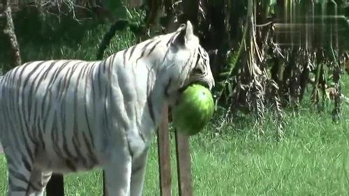 那么,这只老虎为什么会吃瓜呢?原来,这一切都是一场意外。据网友爆料,这只老虎生活在动物园里,平时主要以肉类为食。有一天,动物园的工作人员在给老虎喂食时,不小心将一些瓜果掉在了地上。老虎好奇地走过去,闻了闻,竟然觉得味道不错,于是就开始品尝起来。